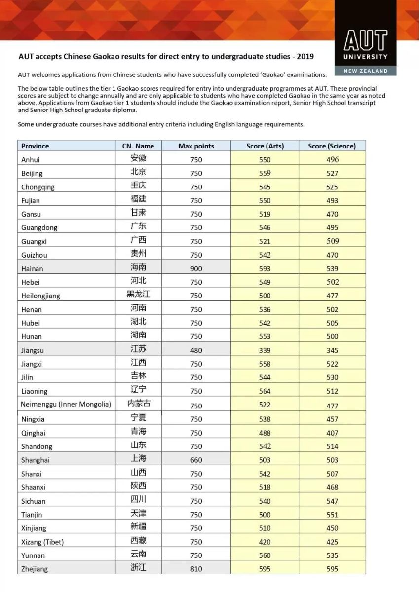 2020年高考成績申請新西蘭八大錄取要求