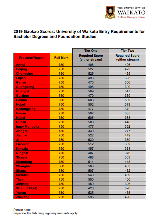 如果你想通過自己的高考成績申請懷卡托大學的本科課程,你的高考成績也同樣需要達到所在省份的一本線。懷卡托大學去年的文理科高考錄取分數線也已經可以查詢,大家趕緊來了解一下你要考多少分才能上懷卡托大學。