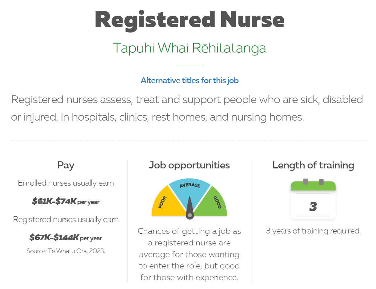 - 剛畢業登記護士通常每年可以賺為61,000紐幣。