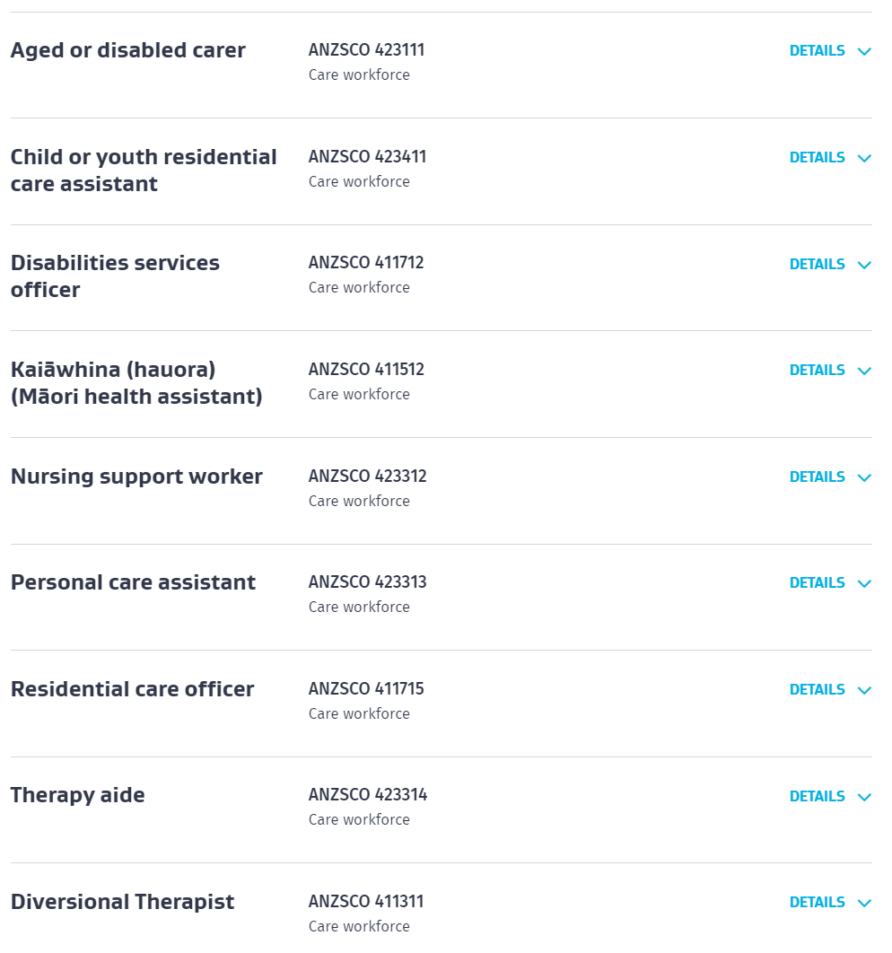 步驟1:從事下方特定護理職位的申請人,時薪達到26.16紐幣(行業薪酬標準Level 3),即可申請為期2年的AEWV雇主擔保簽證。